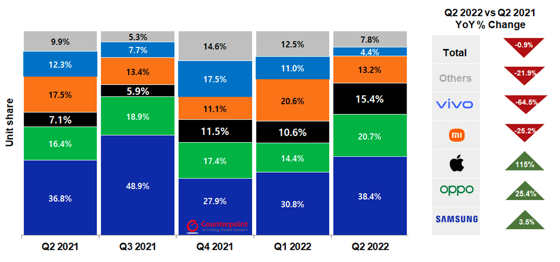 Counterpoint Research nhận định rằng, các mẫu điện thoại thông minh phân khúc cao cấp đã chứng kiến sự tăng trưởng lớn cùng với các lô hàng tập trung vào chơi game. Đây cũng là một trong những lý do khiến iPhone ghi nhận những con số tăng trưởng vượt bậc. Ngoài ra, kết quả này còn do quá trình mở rộng hệ thống phân phối chính thức của Apple tại thị trường Việt Nam.
